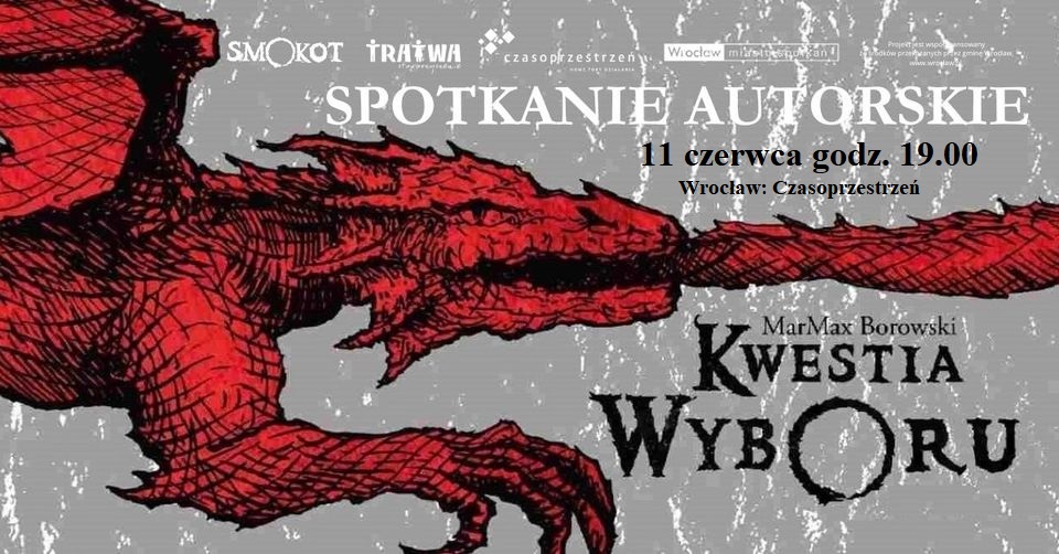 Spotkanie autorskie: Wrocław, 11 czerwca o godz. 19.00 w ogrodzie Czasoprzestrzeni (ul. Tramwajowa 1-3). Może będą smoki, może ciastka, a na pewno suchary;) Więcej info: Fejs lub Instagram Read more articles Previous PostKwestia wyboru. Wybrani (fragment II) Następny wpisSpotkanie autorskie – Czasoprzestrzeń (Wrocław) Tags: literatura, marmaxborowski, pisarz Udostępnij wpis Share this content Opens in a new window Facebook Opens in a new window WhatsApp Opens in a new window X Może ci się spodobać również Wolę na ostro!;) 2025-09-24 Black Week – okazja!!! 2025-12-01 Pratchett: Prelekcja na Dniach Książki 2025-04-28 Dodaj komentarz Anuluj pisanie odpowiedziCommentEnter your name or username to comment Enter your email address to comment Enter your website URL (optional) Zapamiętaj moje dane w tej przeglądarce podczas pisania kolejnych komentarzy.