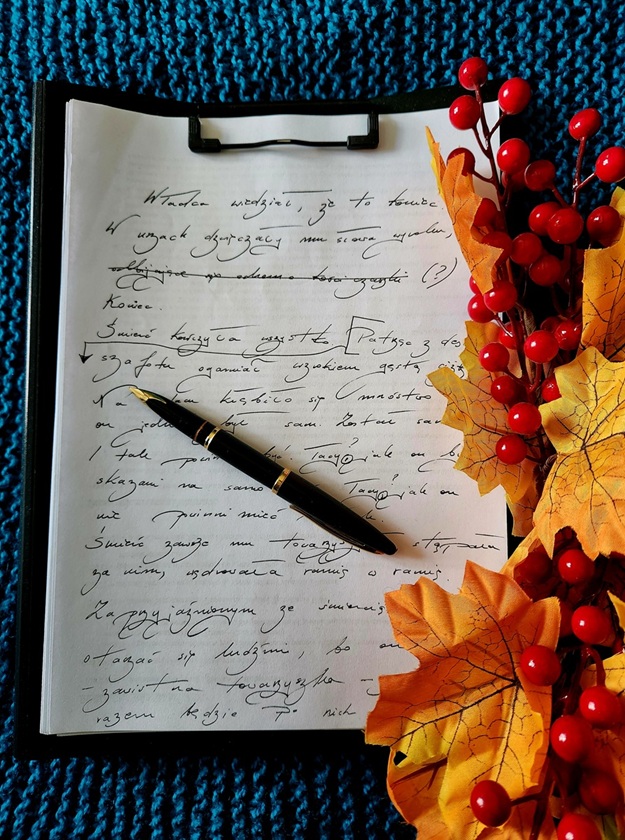 A co ja tak cicho siedzę? A zmieniłem się w jesieniarę w kocyku i słucham szelestu liści na wietrze oraz skrobania własnego pióra. Pisze się… pisze…